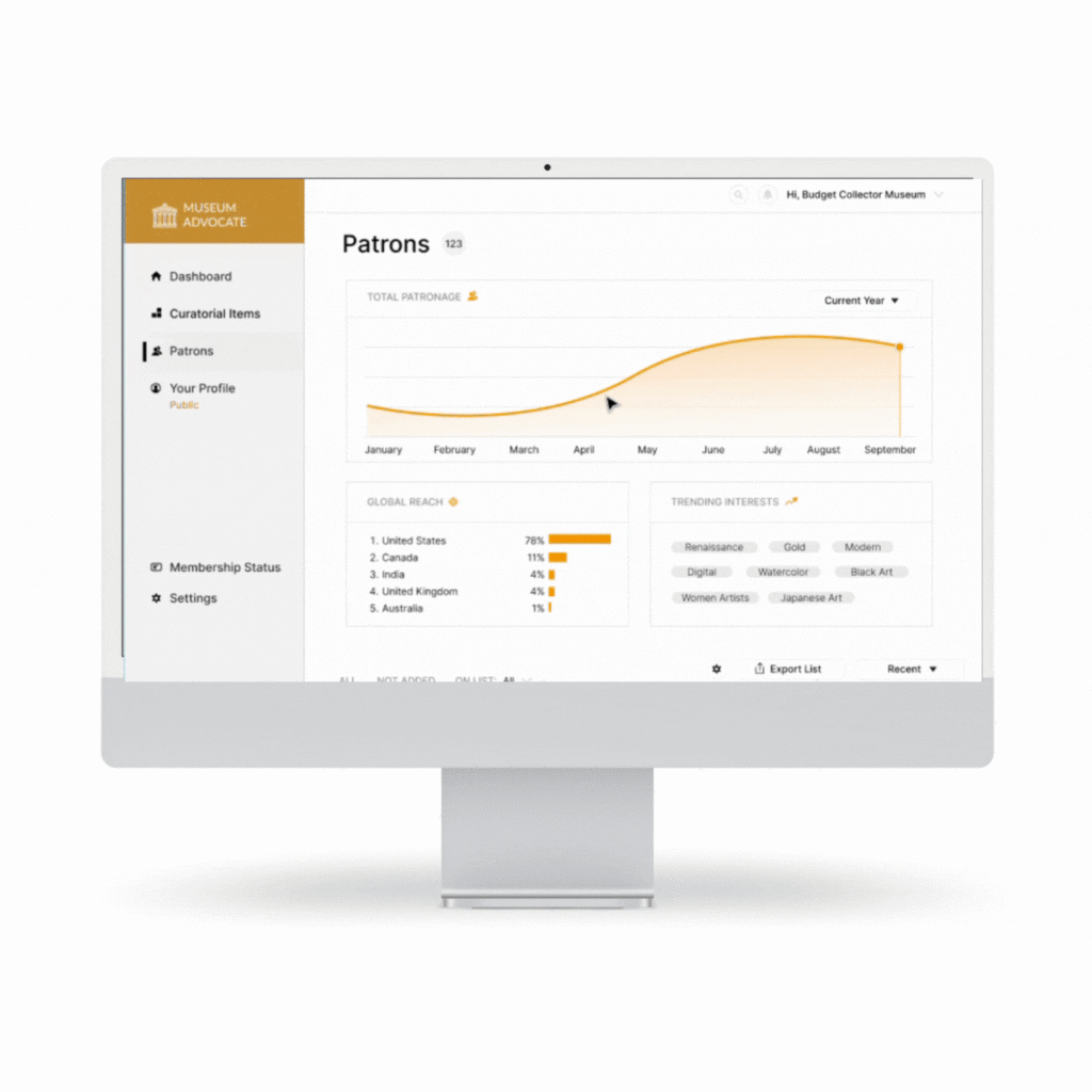 Prioritize your donor prospects with every exhibition. You can export data on the types of people who appreciate your museum, including their email, name, and the amount they spent on collecting each year. Do a deep dive into their collector preferences to curate more donor events that cater to their unique interests.